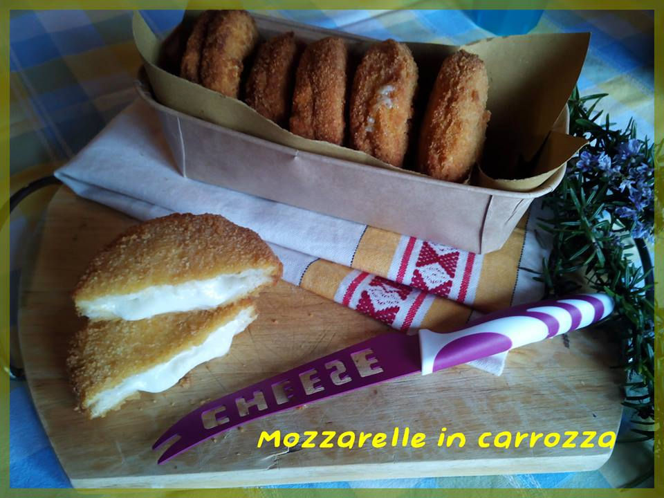 Mozzarella di ottima qualità Pancarrè qb ( o altro pane a vostro piacimento ) uova qb sale qb Pane grattugiato qb olio per friggere 1 coppapasta tondo Procedimento Tagliate la mozzarella e mettetela a scolare ( almeno un paio di ore prima di comporle devono essere belle asciutte )Prendete il pane e con un coppapasta tagliatelo di forma tonda oppure lo potete lasciare della forma classica del pane,mettete la fettina di mozzarella al centro a ricoprire tutta la superficie della fetta ,ricoprire con un altra fetta ,continuate cosi fino a farcirle tutte.Passarle nelle uova leggermente sbattute con un pizzico di sale,e poi nel pangrattato.Prima di friggere devono riposare almeno 1ora.Friggere in abbondante olio di arachide NON FORTE...sono pronte quando sono dorate...servitele tiepide VANNO A RUBA !!! Buona Preparazione