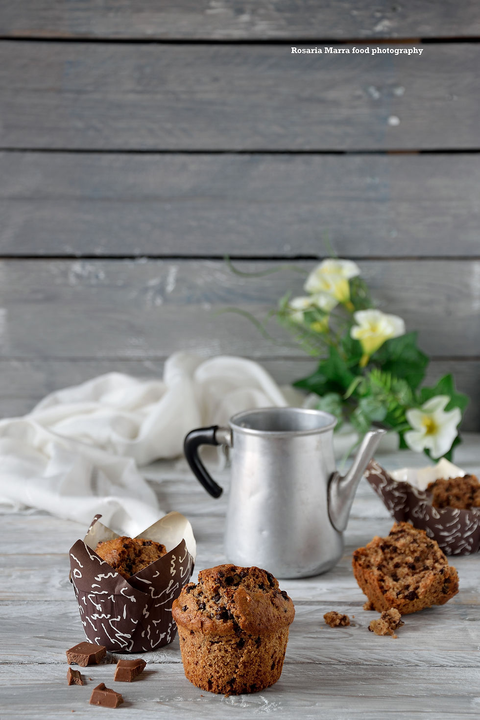 Carnival good to you! Today Fat Tuesday, is in fact the carnival would be over, but we still have the Sunday of piñata, so I take this opportunity to finish at least a few more sweet carnival that for business reasons I could not prepare. Between yesterday and today I baked, or rather I should say I talk and fried crackers, classic and chocolate. Well yes I did the talk chocolate and even the crackers. Well I tell you to do, simply delicious !!! But waiting to post you the recipe for these fried, I have to commentarvi the goodness of these muffins and cake with chocolate chips. Never like these muffins are perfect for breakfast, if you soaked them in milk coffee, if you absorb like a dream! I've prepared for a B & B for breakfast, I do not hide that I still have a few slices of my panettone, and then I took the opportunity to prepare these delicious squishy muffins. Simple in ingredients and preparation, you can have fun preparing them with your children, will thank you! Good food, good muffins and good preparation to you !!!