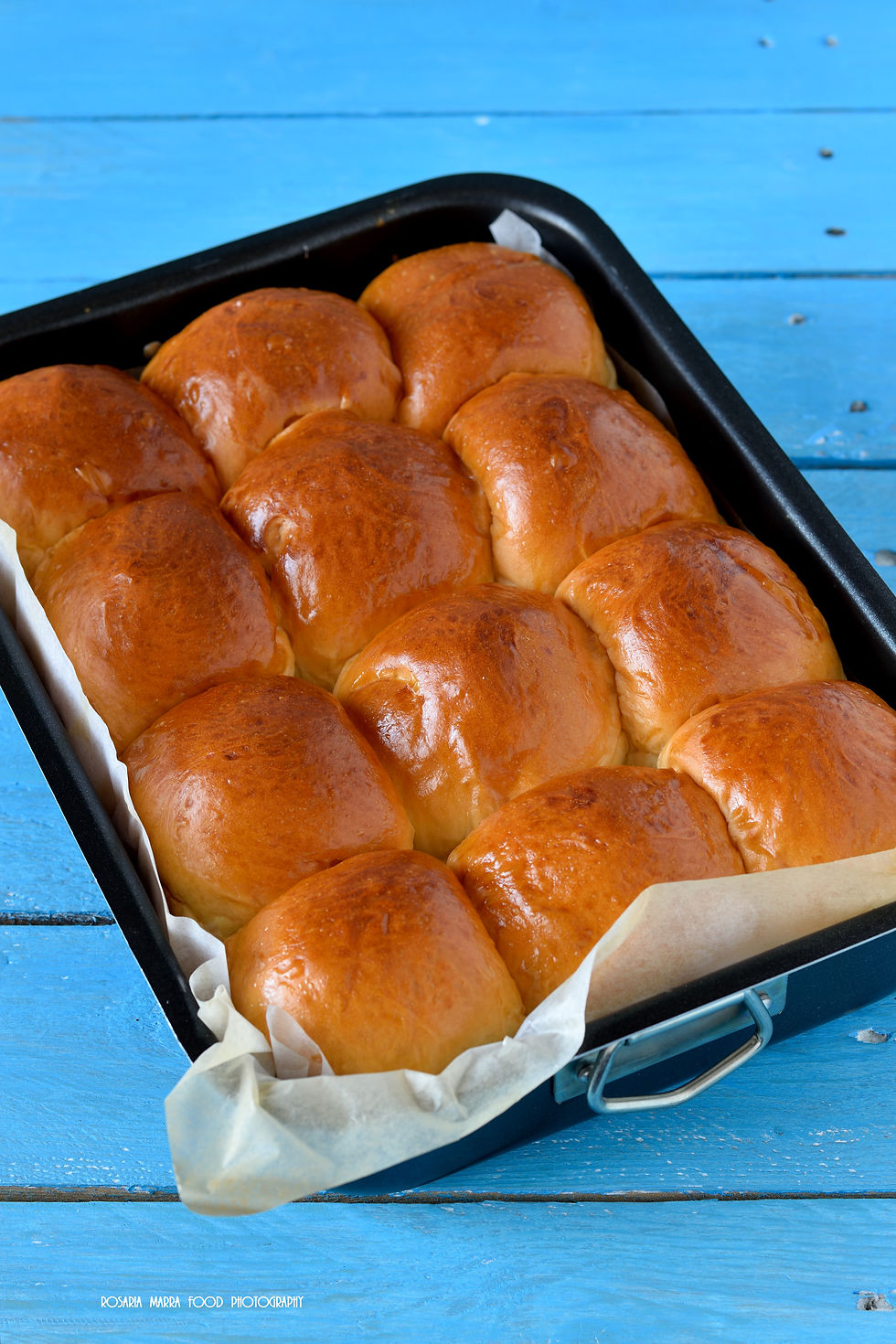 Queste soffici,e semplici brioche sono perfette per la prima colazione. Una ricetta di una bravissima blogger Paoletta Sersante, che ho conosciuto proprio da vicino, nel vero senso della parola, perché ho frequentato con lei insieme ad Adriano Continisio, 2 corsi sulle lievitazioni e sui grandi lievitati, sono stata ad Ancona, e a Mantova circa 4 anni fa..un ricordo bellissimo, due splendide persone, che mi hanno arricchita culturalmente. Conoscevo già le sue brioche pan di panna, ne avevo sentito parlare, ma non mi decidevo mai a farle. Galeotto fu un post di Paoletta su fb, in un lampo mi sono balzate alla memoria ed eccole qua. Si preparano davvero con pochissimo tempo, non sono molto dolci e si conservano benissimo. Mia figlia le ha definite “brioche magiche” perché sono di una morbidezza disarmante. Io di mio ho aggiunto un mix di aromi tipo l’arancia grattuggiata, per profumare l’impasto, L’assaggio ha superato ogni aspettativa. Sono venute fuori delle Brioche sofficissime e areate, dalla consistenza morbidosa. Si conservano benissimo chiuse in un contenitore ermetico e messe in frigo, al mattino tiratele fuori un attimo in microonde e il gioco è fatto, magari per i super golosi uno strato di marmellata o confettura, o la crema di nocciole, lascio a voi che tipo di crema volete usare, tanto non è quello il problema la scelta della farcia…ma bensi che finiscono subito. Provatele !!! buona cucina a voi!!!