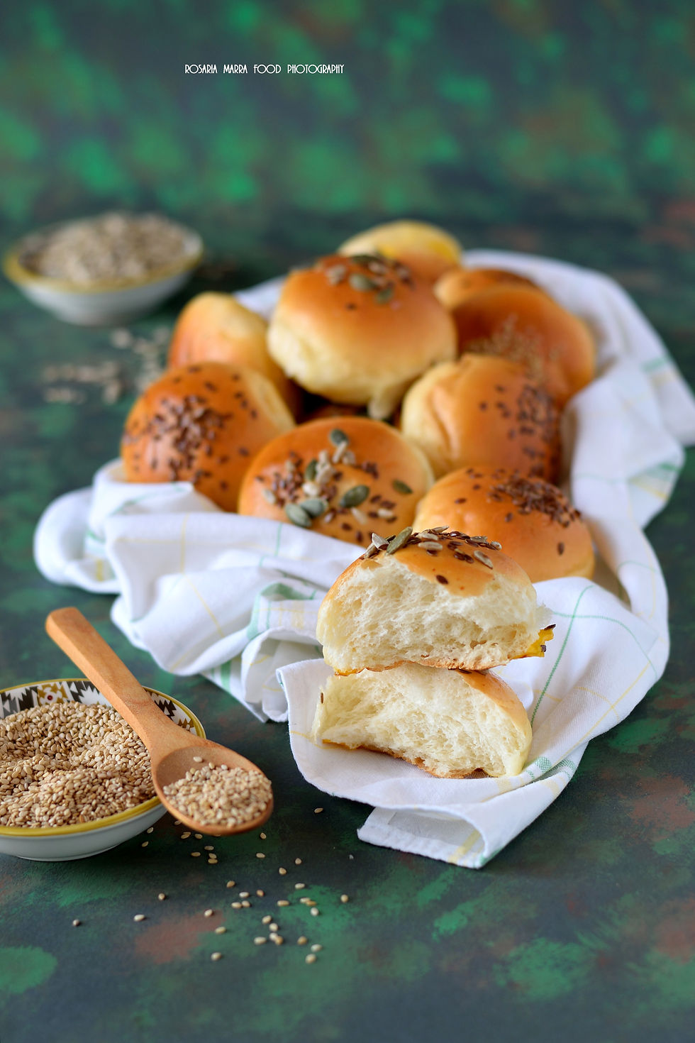 Mettete nella ciotola della planetaria, i fiocchi di latte, l’uovo, lo zucchero,il bicarbonato e il lievito sciolto nell’acqua. Mescolate con una forchetta, fino a rendere tutto omogeneo, aggiungete la farina un po’ per volta e impastate , a metà impasto aggiungete il sale e portate ad incordatura. Rovesciate l’impasto sulla spianatoia, poi mettetelo in un contenitore unto leggermente di burro e lasciatelo raddoppiare.(con questo caldo ci impiegherà poco). Trascorso il tempo sgonfiare l’impasto e stagliare i panini, io li ho fatti da 40 gr l’uno. Sistemateli su una teglia foderata di carta forno, copriteli con pellicola alimentare e lasciateli raddoppiare. Nel frattempo preriscaldate il forno ventilato a 170°C, preparate l’uovo con un pizzico di sale e spennellate delicatamente i panini e cospargeteli con i semini, infornate per circa 20 minuti, regolatevi in base ai vostri forni. sfornate e fate raffreddare completamente. Sono ottimi da buffet e da aperitivo da abbinare per esempio con marmellata e formaggi…poi spazio alla fantasia. Buona preparazione by Rosaria Marra.