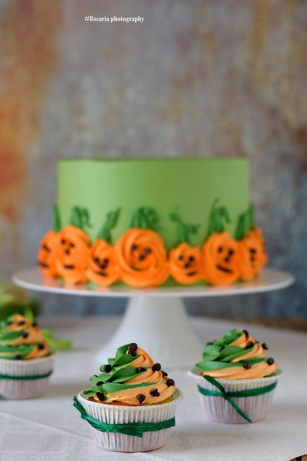Poi capovolgete la torta sul piatto di servizio, stuccatela con la panna colorata leggermente di verde, e fate le zucchette arancioni con occhi e bocca di cioccolato…divertente vero? Buona preparazione by Rosaria Marra #rosariaphotography