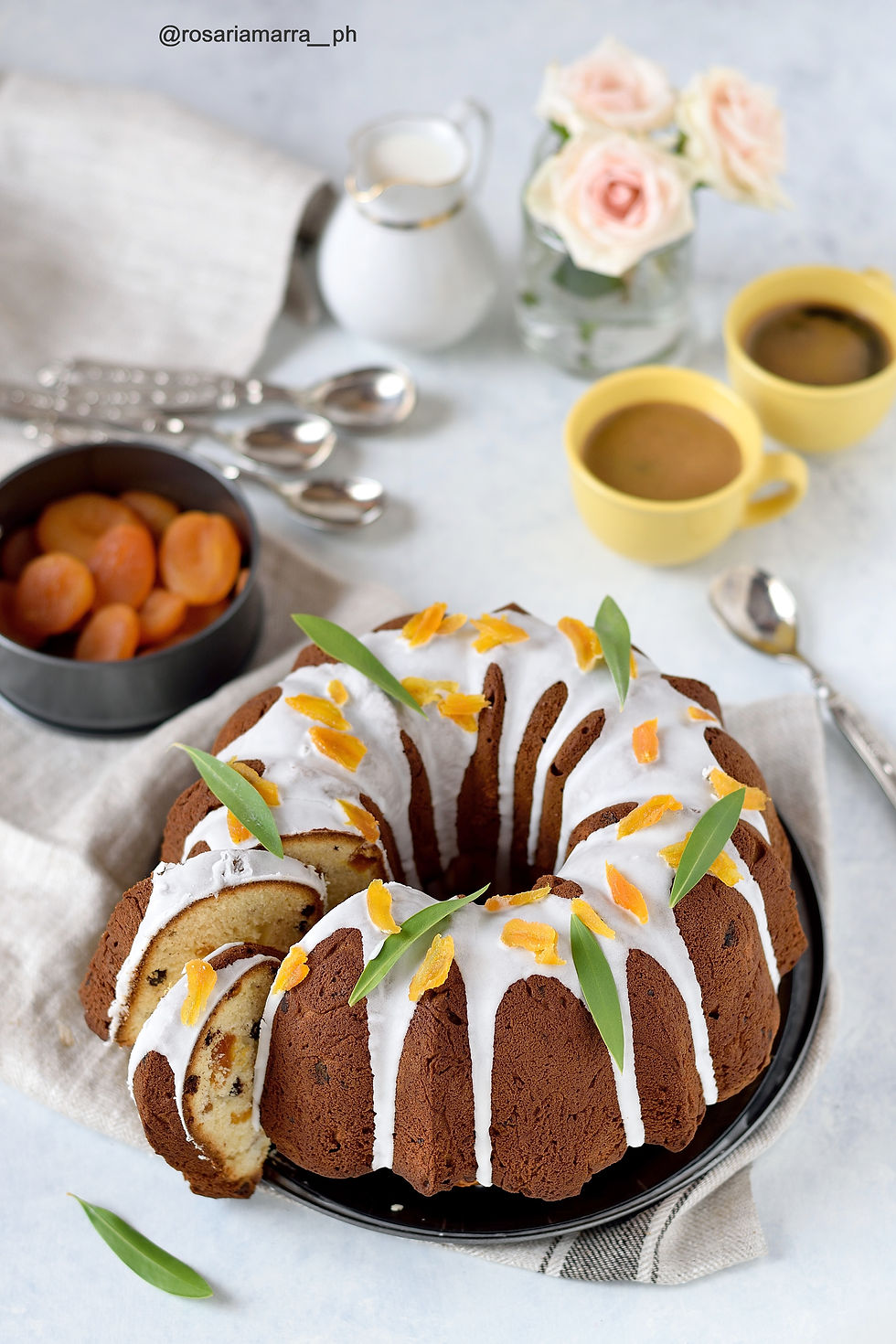 Settembre è proprio un mese particolare. A metà tra l’estate e l’autunno, ancora molto caldo in molte aree d’Italia, cieli sereni, vento caldo ma foglie che cominciano ad imbiondirsi. Umidità più fresca. Ce ne regala di prelibatezze, molte delle quali sono concessioni di brevissima vita: finferli, fichi e uva fragola adesso vanno per la maggiore e dobbiamo approfittarne. Io invece ho approfittato del regalo di una mia amica, che un giorno se ne è venuta con un sacchetto pieno di albicocche secche…tanto tu saprai cosa fare…eccerto ..una bella ciambella per le mie colazioni autunnali..non potete sapere cos’è…consistenza ideale da inzuppo, profumata e golosa perché arricchita dalle gocce di cioccolato..il tocco speciale è la glassa che la rende ancora più golosa e dona una bella decorazione …ho capito mettetevi all’opera che il fine settimana sta arrivando e al voglio vedere sule vostre tavole della colazione…ci state?